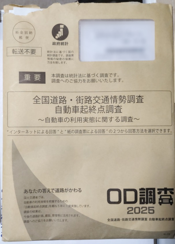 調査対象日(指定された平日と指定された休日)を含む、自動車での移動実態を回答報告する調査です。